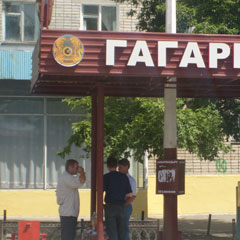 читательница Вера Кузьменко. На каркасе автобусной остановки на улице Гагарина