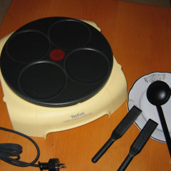 Сегодня лидером продаж электроблинниц для домашнего пользования - а есть еще и оборудование для точек быстрого питания - является фирма Tefal. Она же создала первую блинницу с антипригарным покрытием рабочей поверхности. Печь на них - одно удовольствие: никакого дыма и чада, а смазать блин маслом всегда можно и на тарелке. Но если вы привыкли смазывать поверхность сковороды, можете делать это и антипригарным покрытием. Кстати, в комплект входят лопатки для переворачивания блинов, не царапающие поверхность. Саму блинницу даже в работающем состоянии можно двигать с места на место за ручки из термопластика. Мыть ее легко, тем более что рабочая поверхность - черного цвета.