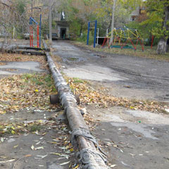 «НГ» начинает новый сезон проекта «Оденем «голые» трубы». О первом участке неизолированной теплотрассы «НГ» сообщил житель Костаная Геннадий ПОЛЕВОЙ. Теплотрасса во дворе дома № 179 по ул. Баймагамбетова проложена по краю детской площадки.