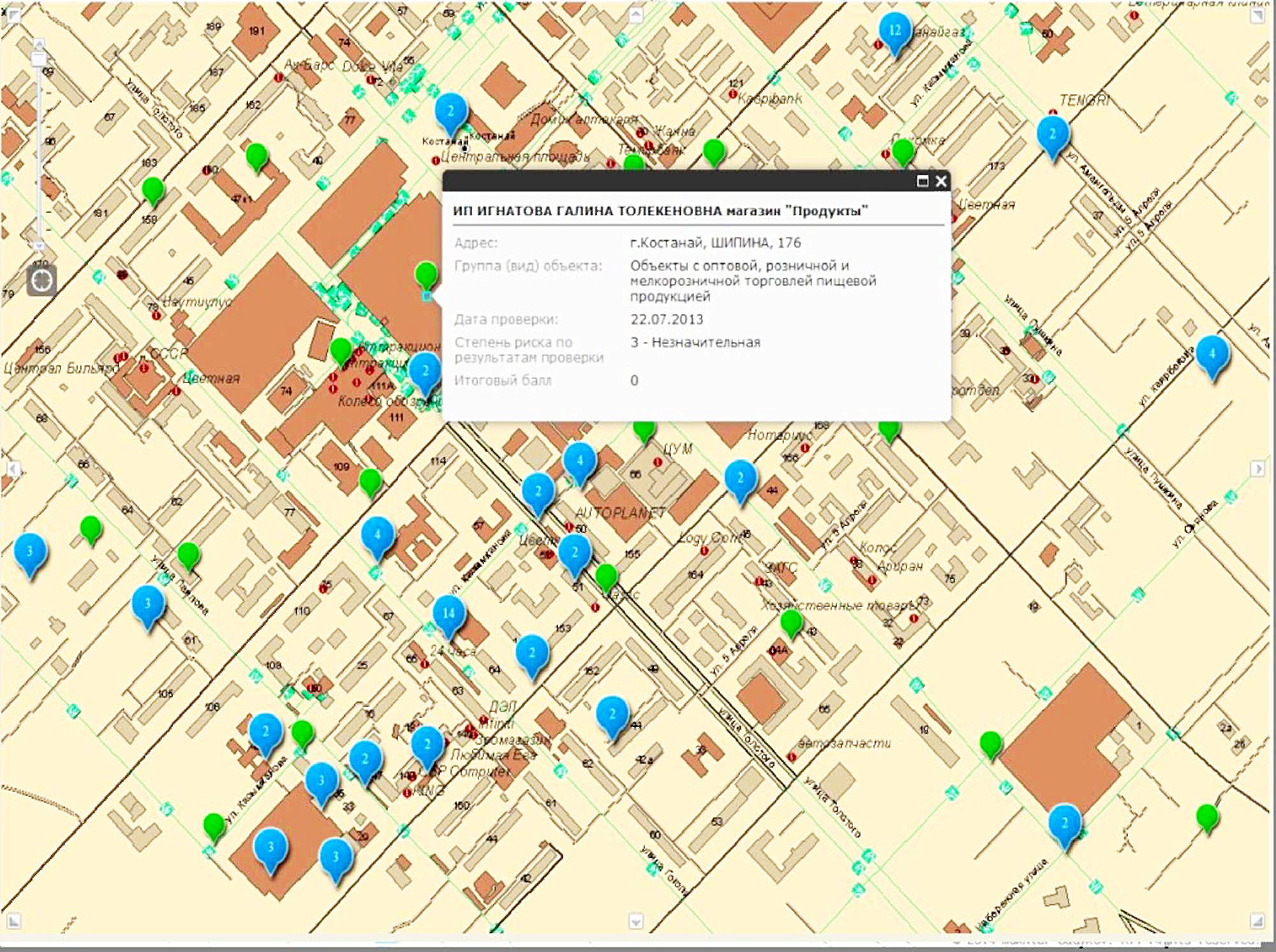 - С февраля по июнь пилотное апробирование проекта ЕРСОП произошло в органах по защите прав потребителей, у которых наибольшее число проверяемых субъектов и объектов, - сказала начальник отдела. - Реестр доступен государственным контролирующим органам в виде базы данных, а гражданам и предпринимателям в виде Карты проверок, на которой отображается рейтинг субъекта и степень риска. Проще говоря, Карта после несложного запроса выдает визуальную информацию о законопослушных и неблагонадежных предпринимательских структурах. Гражданам, в частности, это дает возможность выбрать место приобретения товаров. Карта - республиканского масштаба, приближая, можно найти свою область, район, населенный пункт. Информация о конкретном субъекте отображается окошечком с замещенными в нем сведениями. Предприниматели, несогласные с отнесением их к той или иной степени риска, могут обжаловать данные действия через портал «Бизнес тірегі» - «Опора бизнеса». Сейчас в ЕРСОП органами защиты прав потребителей сформирована база, в которой содержатся сведения о 127 тысячах субъектов и объектов проверок, по Костанайской области их около 8 тысяч. Сейчас к этому проекту подключаются органы противодействия чрезвычайным ситуациям и Комитет контроля медицинской и фармацевтической деятельности. В последующем планируется поэтапный переход на эту систему всех госорганов контроля и надзора.