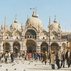 Визитной карточкой Венеции считается собор Святого Марка, где зарождалось римское право и проходили суды. Располагается он на центральной площади. Сюда постоянно слетаются огромные стаи голубей. Они окружают вас со всех сторон и мягко воркуют. Кстати, по информации, недавно прошедшей в «Желтой газете», именно здесь птицы чуть не заклевали насмерть популярную телеведущую Анфису Чехову.