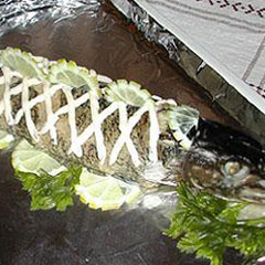 Еще один вариант приготовления некрупной щучки. Подготовленную рыбу обезглавить и приправить смесью трав и пряностей для рыбы, в брюшко положить кольца лука и зелень. Потом уложить тушку на фольгу (утолщенную или в два слоя), щедро полить соевым соусом, закрутить фольгу сверху над рыбой, как можно герметичнее, но при этом оставляя над нею как можно больше свободного пространства. Запекать в духовке 15-25 мин. (зависит от размера щуки). Рыбу не солить! Соус и так достаточно соленый. Вкусно и в горячем, и в холодном виде. Так можно готовить не только щуку, но и другую рыбу.