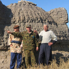 ...До охотничьей вечерки остается часа три. Вместе с рудничанами отправляюсь на экскурсию к стоящему на высоком берегу Шоптыколя строению. Оно похоже на огромный шлем воина, может быть, даже эпохи Чингисхана. Выстроено из какого-то странного черного саманного кирпича, а изнутри смазано неким допотопным обожженным раствором. Наш егерь уверен в том, что эта мазарка (?) была возведена «и не в прошлом, и не в позапрошлом столетии, а гораздо раньше». Наряду с казарой это древнее строение - замечательная достопримечательность Шоптыколя и проходящей рядом старинной полевой дороги в Тургай. Благодаря последней, видимо, и стали известны народу эти затерянные в наурзумской глуши богатые дичью и рыбой места.