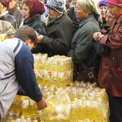 Традиционная осенняя ярмарка продуктов питания, прошедшая в эти выходные в Костанае, пользовалась невиданной популярностью. Костанайцы, обалдевшие от вида мяса по 400тенге и масла по 295, кинулись раскупать то и это. При этом, большинство из них не знало, что подобные ярмарки, на которых местные производители (и крупные продавцы) вынуждены были продавать свой товар ниже рыночной цены, проходят во всех регионах по распоряжению правительства. Давно известно: голодный электора - злой электорат.