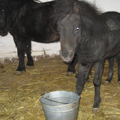 Сегодня маленькие смешные лошадки дали потомство и живут небольшим табунком из четырех взрослых пони. С полгода назад тут появился очередной жеребенок. Как оказалось, имя гривастому парнишке работники конезавода пока не подобрали. В имени должны быть обязательно две буквы от кличек родителей. Поскольку папу этого вороного пони зовут Чечен, а маму - Фатима, имя жеребенка должно начинаться на «Ч» и в ней непременно должна присутствовать буква «Ф».