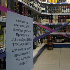 И лишь в одном, довольно крупном супермаркете спиртное в этот день не продавали в принципе. Объясняли честно: «В связи с указом Президента». И обещали: «Ждем вас завтра».