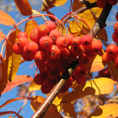 Между прочим, хорошо плодоносит рябина через год, так что, кто надумал сделать на нее ставку, запаситесь сейчас. Можно наморозить, можно посушить, смолоть потом в кофемолке и добавлять в чайную заварку. Только помните, что сушить плоды можно в духовке при температуре не выше 60 градусов. Чем ниже температура обработки при сушке - тем больше сохраняется витаминов.