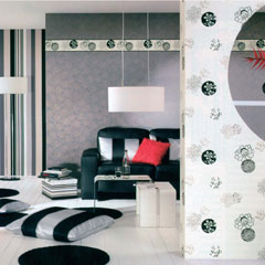 Бордюры уместны в помещениях с высокими потолками. Используйте «правило» двух третей: две трети высоты отмеряют от пола и оклеивают стену темным полотном, верхнюю треть, примыкающую к потолку, - светлым, а между ними по горизонтали прокладывают декоративную полосу (бордюр). Хотя можно обойтись и без него, если использовать обои с одинаковым рисунком, но разных цветов: узор будет начинаться на полотне одного оттенка и продолжаться на другом.