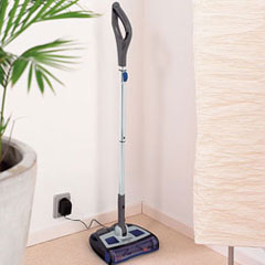 Электрические швабрыСегодня среди беспроводных пылесосов наибольшей популярностью пользуются электрошвабры. Эти пылесосы хороши тем, что могут убирать пыль в труднодоступных местах. Электрошвабра по размеру и виду напоминает обычную швабру. При этом она оснащена мощным мотором и системой сбора пыли. Во время уборки пылесос освежает воздух и втягивает в себя всю грязь. Обычно на щетке установлены маневренные колесики, благодаря которым пылесос может ловко лавировать между мебелью. Он также очень удобен при уборке лестницы, чистке люстр или жалюзи. Во многих электрошвабрах установлен циклонический контейнер-пылесборник. Его приемущество над обычным контейнером для пыли состоит в том, что в нем пыль прессуется в плотный комок. Это очень удобно при чистке пылесоса. Пыль не разлетается в разные стороны из пылесборника. Комок грязи следует просто вытряхнуть в мусорное ведро, промыть водой контейнер и фильтры, а пылесос подключить к зарядному устройству. Мощности аккумулятора электрошвабры хватит на уборку помещения в 80 кв. м.