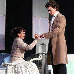 Наблюдая, как две тургеневские девушки пытаются соблазнить красавца, публика не сразу догадается, чем у героев закончится дело. Дуэт Натальи Петровны и Верочки строится на контрасте - страстность, дремавшая под маской холодной красавицы, еще выразительнее на фоне трепетной влюбленности, которая охватывает юную девушку.