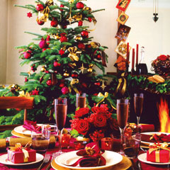 акцентом декорации, а разложенные на столе шары и мишура добавят
