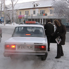 В этот раз мы решили проверить сервис такси «Азия». Если верить их рекламному ролику, то у этой фирмы такси он должен быть фантастическим. Традиционно попытались вызвать такси с мобильного телефона. Диспетчер вежливо сообщила нам, что с мобильного телефона заявки они не принимают. Узнать причину нам не удалось. Диспетчер повесила трубку. Пришлось вызывать такси из «Недорогого» магазина. Через пять минут за нами должны были подъехать белые «Жигули». На улице было -20 . Такси нам пришлось ждать 7 минут. За короткий промежуток времени мы изрядно замерзли. Решили, что отогреемся в такси. В машине действительно оказалось довольно-таки тепло, но грязно. Прайс-лист с расценками на передней панели находился в потрепанном прозрачном файле, который весь был в засохших пятнах чая или кофе. Мы поинтересовались у водителя, почему диспетчеры не принимают заявки с сотового телефона.