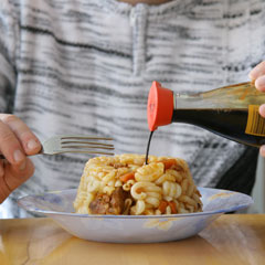 А вот синтетические соевые соусы готовят быстро, путем гидролитической реакции кукурузного сиропа, карамельного красителя, соли и воды. В них не хватает соленого аромата натурального соевого соуса, зачастую они имеют металлический привкус.