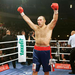 А во втором раунде случилось то, чего так многие ждали, и в то же время, во что почти перестали верить: итак, основательно помяв Ляховича джебом, Валуев начал очень эффективно включать свою многострадальную правую руку, быстрые прямые и боковые удары которой загнали белоруса в угол ринга, и лишь гонг об окончании раунда спас того от нокдауна.