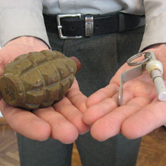 Последний случай изъятия боевых гранат по линии ДКНБ произошел около двух лет назад в Рудном. Местный житель был командирован на утилизацию старых боеприпасов в Балхаше, откуда и стянул две гранаты РГД-5. Впоследствии рудничанин крепко выпил, взял гранату и отправился на подвиги. Подойдя к одному из киосков, мужчина пригрозил продавцу, что если ему не дадут денег, он взорвет гранату. Продавец деньги отдала. Во втором киоске этот фокус не сработал, поэтому он выдернул чеку гранаты и поставил ее на прилавок. После взрыва чудом уцелели и преступник, и его жертва, хотя были изрядно иссечены осколками. Вторую похищенную гранату работники ДКНБ изъяли тогда в квартире преступника.