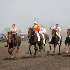 Затаили дыхание болельщики на дистанции 2400 м, ожидая, кто из 10 наездников первым пересечет финишную линию. Автомобиль достался актюбинцу Марату Сатапбергенову. На дистанции в 2000 метров равных не было его брату - Руслану Сатапбергенову.