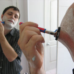 Первым прошел испытание станок № 1 - Gillette Slalom plus. Несмотря на все рекламные трюки, плавающие головки, суперострые лезвия и использование пенки для бритья, на коже появились небольшие ранки и порезы, да и волосков после бритья осталось довольно много (см. в таблице).