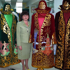 - Одна пола бордового чапана полностью посвящена России: там березки, церковь, Кремль. Вторая посвящена Казахстану. На ней беркут, солнце, здесь даже Дом правительства есть, - рассказывает руководитель творческого коллектива дизайнеров Елена ШЕВЧЕНКО. - Наши художники работали на эту тематику, потому что осенью Костанай примет саммит с участием президентов России и Казахстана.