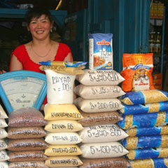 По данным областного филиала АО «Казагромаркетинг», на этой неделе цена за килограмм казахстанского риса «Акмаржан» варьировалась в диапазоне от 105 до 190 тенге. С января 2008 года она держалась на уровне 100-110 тенге. Уточним, что маркетологи фиксируют средние розничные цены на рынках Костаная. В магазинах рис дороже, особенно импортный. Популярный пакетированный продукт из российской Увельки продается уже по 190 тенге. Это за полкило.