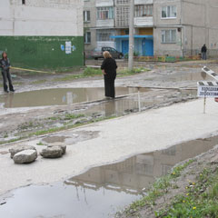 Недавно жители соорудили преграду в этой пешеходной зоне: вбили тонкие трубы, чтобы автомобили не могли проехать. Но состояние дороги от этого лучше не стало. Когда корреспонденты «НГ» появились в 7 микрорайоне, свое возмущение стали высказывать и другие жители.