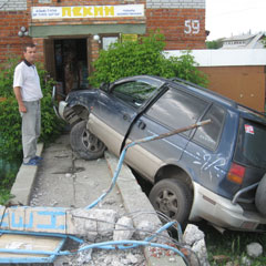 - Mitsubishi от магазина оттащили друзья водителя иномарки, - сообщил «НГ» на следующий день после аварии Юрий Толачев. - Сам водитель сказал, что у него лопнуло колесо, он не справился с управлением и вылетел на обочину.