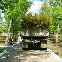 В Костанае началась высадка новых саженцев - взамен тех, которые были посажены осенью 2007 года, но не прижились.