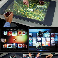 Компания Microsoft презентовала новый пользовательский интерфейс в виде стола, который позволяет простым прикосновением рук к 30-дюймовому мультиконтактному экрану заказывать и оплачивать блюда в ресторане, покупать билеты в кассах, редактировать изображения, играть и проделывать множество других вещей.