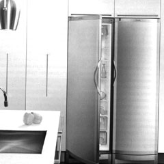 Внутри морозилки разделены на 6 -7 секций с полками или выдвигающимися ящиками. Достоинство таких моделей в том, что они могут образовывать единый фронт с холодильником, являя собой точную копию модели side-by-side. Модели-тумбы компактнее, но и объем их в 2 раза меньше. Они бывают отдельно стоящими и встраивающимися в мебель. Особняком стоят морозильники-лари. Они похожи на сундуки. Их покупают в основном для загородных домов и погребов. В квартирах их использовать неудобно из-за размеров и открывающейся кверху крышки.