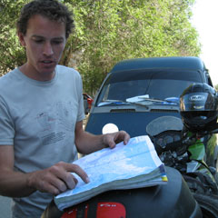 Похлопывая своего двухколесного друга - мотоцикл фирмы «Кавасаки», купленный им за 8000$, Майкл показывает свои вещи - палатку, запасную резину, которые умещаются в двух прикрепленных сбоку ящичках, закрывающихся на замки. Говорит, что не боится никаких погодных условий и стойко переносит ненастье. Романтик, одним словом!