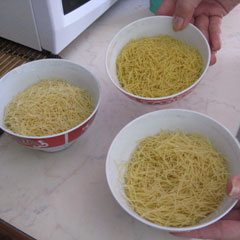 Вермишель выручает любую хозяйку при приготовлении на скорую руку. Варится она быстро, блюд с ней существует множество. Вот только частенько бывает так: постоит суп часок-другой - и превращается в самую настоящую кашу. Вермишель разбухает, теряет вид, теряет вкус... Для своей экспертизы мы купили три вида вермишели: две упаковки российских производителей и пачку отечественных - костанайских.