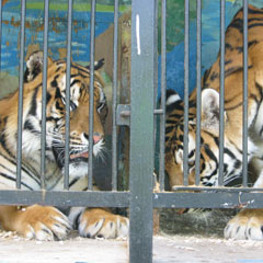 Костанай стал родиной для трех маленьких тигрят, которые родились утром 17 августа в передвижном зоопарке. Вот только радость огорчило поведение матери: амурская тигрица Кора отказалась от своих детенышей. В свои 7 лет Кора родила впервые и, как говорит смотритель за животными Сапар ЕРНАЗАРОВ, так поступают 80% тигриц, которые не признают первенцев. Рядом с Корой в соседней клетке сидит папаша тройни - бенгальский тигр Гром.