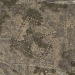 Изображений в Амангельдинском районе - два: гигантский, со стороной в 300 м квадрат с пересекающимися диагоналями и трехлучевая свастика диаметром около 90 м. Видны фигуры только с высоты птичьего полета - обнаружить их удалось с помощью спутниковой съемки поверхности земли. Квадрат составляют 101 холм высотой примерно 60 см, свастика также выполнена из насыпей. На днях с места находки вернулись костанайские археологи, которые провели предварительный осмотр изображений.