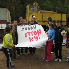 Тем временем инициативная группа, вооружившись фломастером, рисовала наглядную агитацию. Под словами «Долой стройку!» детской рукой было приписано: «Не лишайте нас детства». И девять восклицательных знаков.