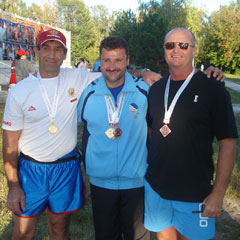 Мы выступали и в других видах спорта, говорит Карпенко. В беге на 100 м среди ветеранов 2 место занял Александр Рудев, я к финишу пришел первым. В прыжках в длину с разбега Александр стал вторым, уступив победу спортсмену из России. Также мы заняли 3 место в комбинированной эстафете по плаванью 4х25 метров, уступив победу спортсменам из Темиртау и России.