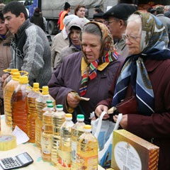 В то же время на ярмарке в центре города картошка за те же 85 тенге шла "в улет". Возможно, тут срабатывал ярмарочный эффект. Народ надеется, что там все дешевле, чем на базаре, поэтому старается не упустить момент. Но есть тут и еще одно обстоятельство. Картофель, который я видел на рынке, по словам продавца, был местный - из Мендыкаринского района, но вид у него был такой, что возникало сомнение: если заложить его на хранение, то "доживет" ли до следующего урожая? Чего не скажешь о продукте, которым торговали на ярмарке.